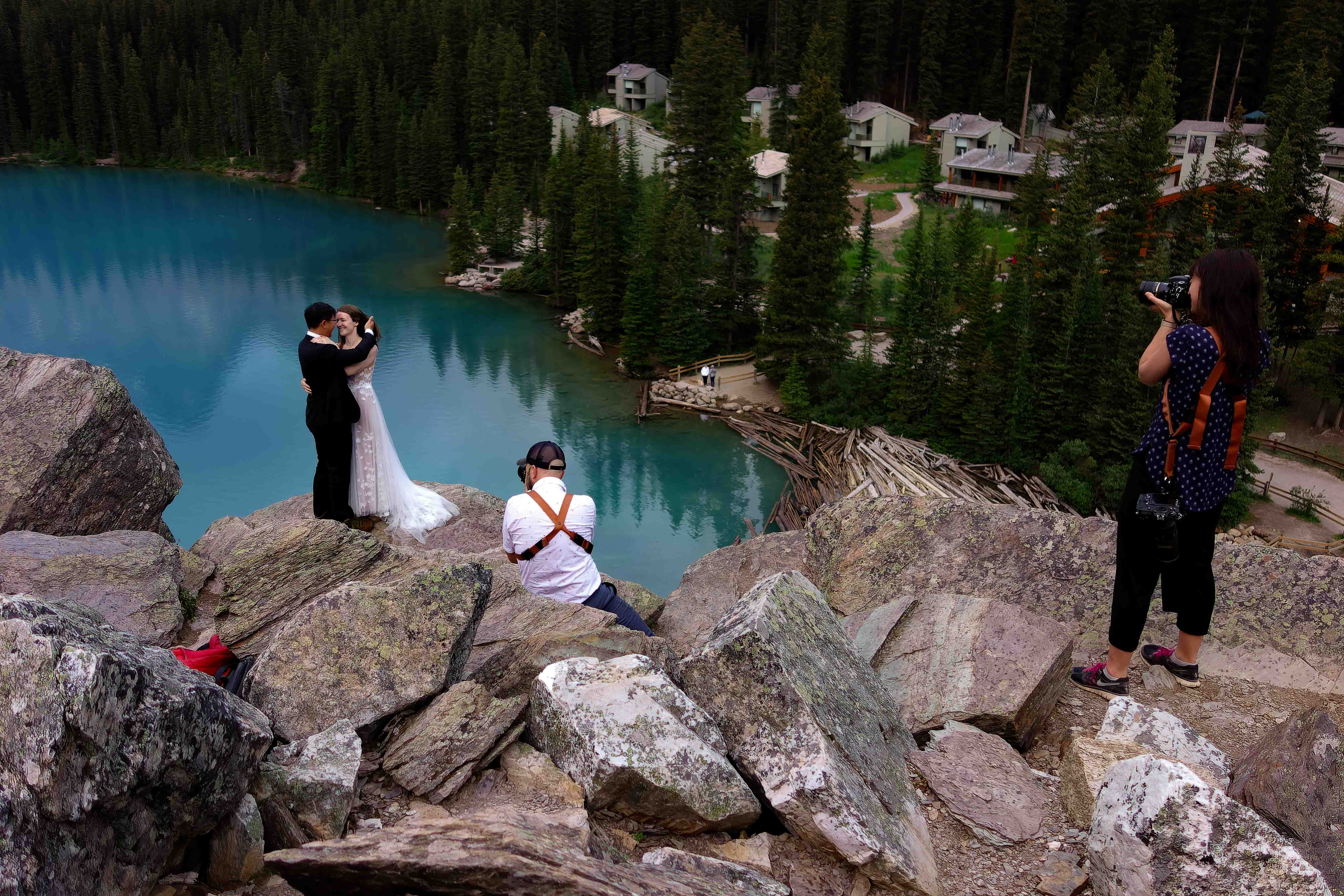 Love these photos? We certainly do! Keep scrolling to see our photographers as they capture these special moments. While we were enjoying the sunrise and Abby + Dave were taking photos, Doug was busy documenting the whole thing. Only later did we realize that we have photos of the same moment (or, at least, similar moments) from two perspectives. We enjoyed seeing them side-by-side and hope you do too 🙂