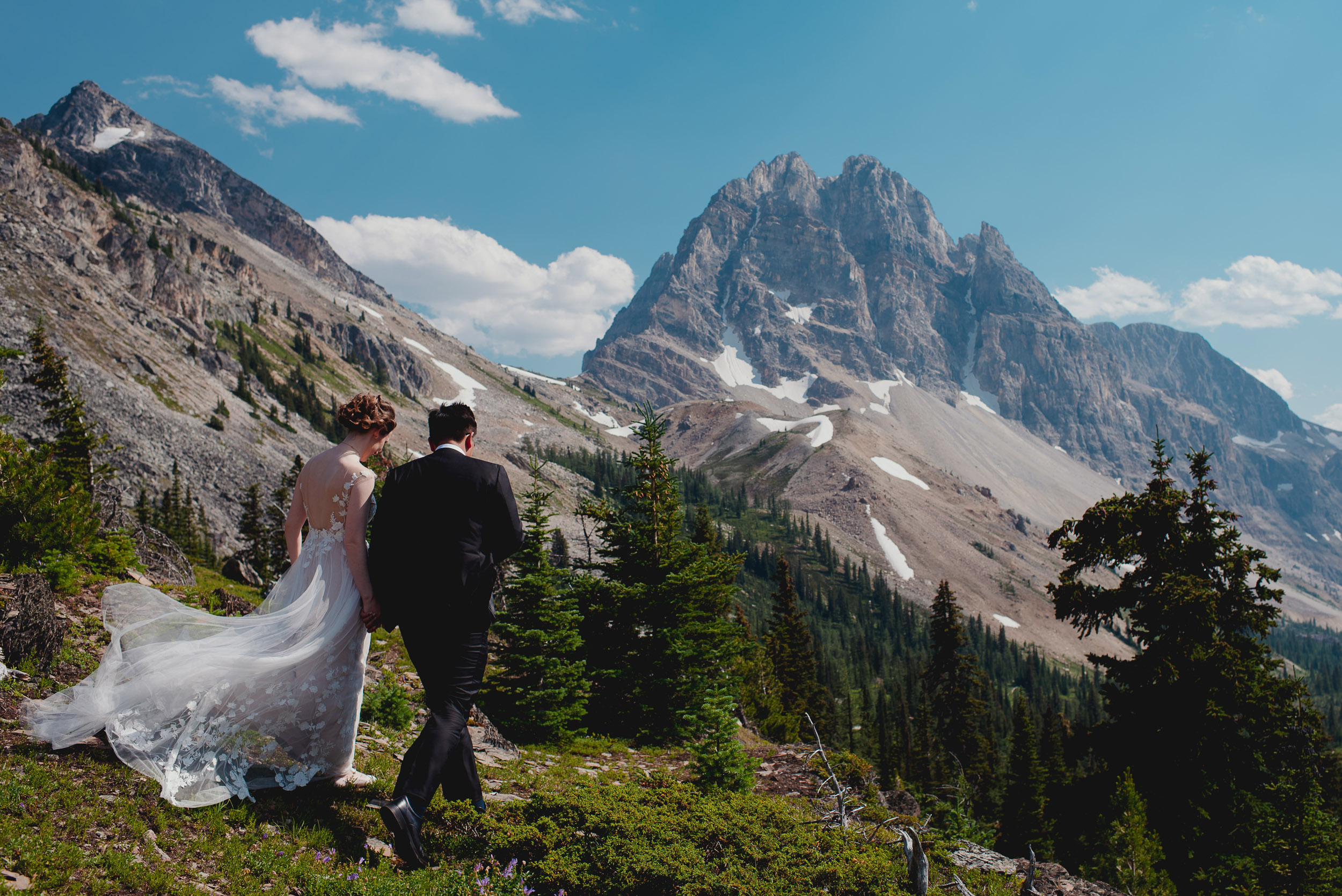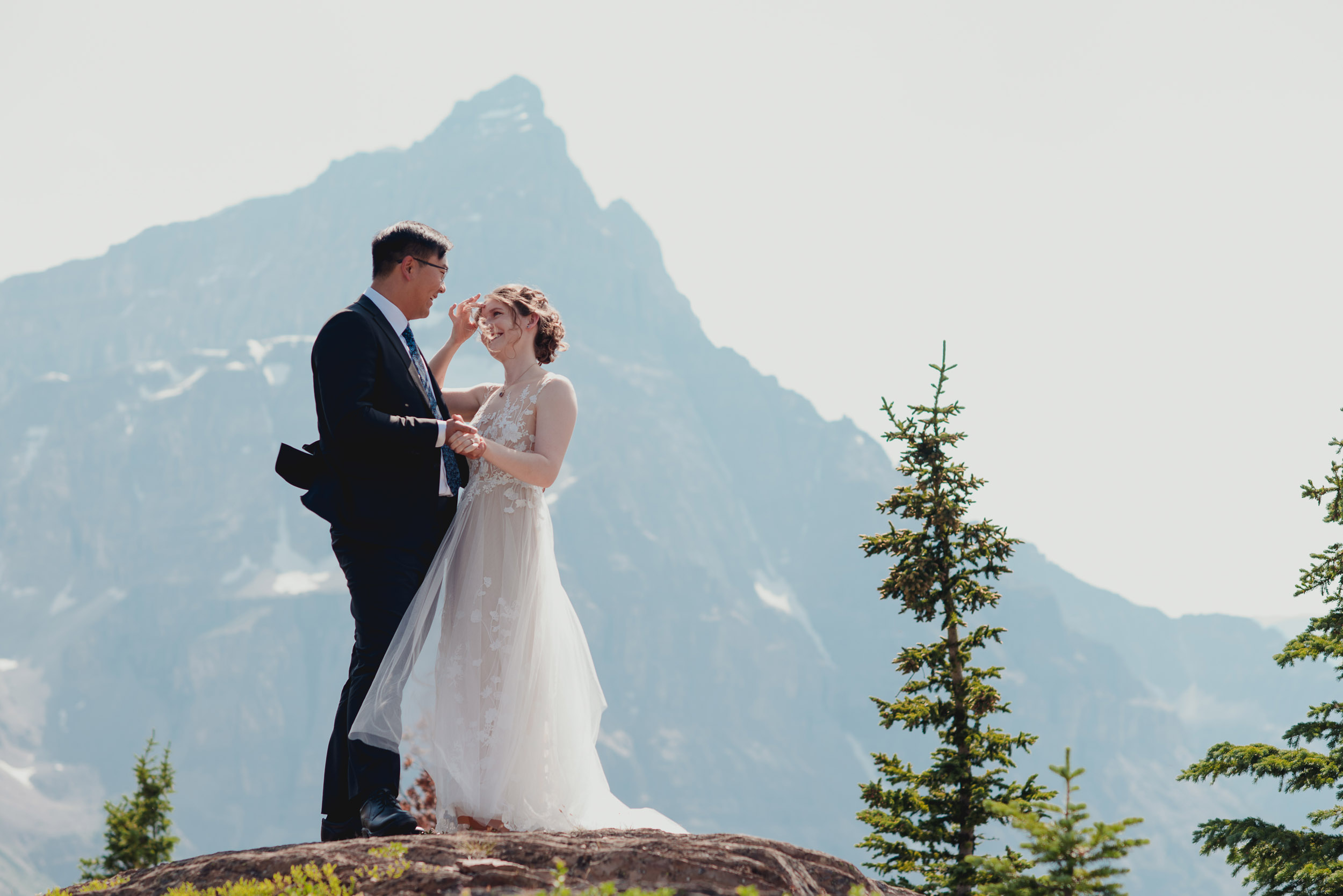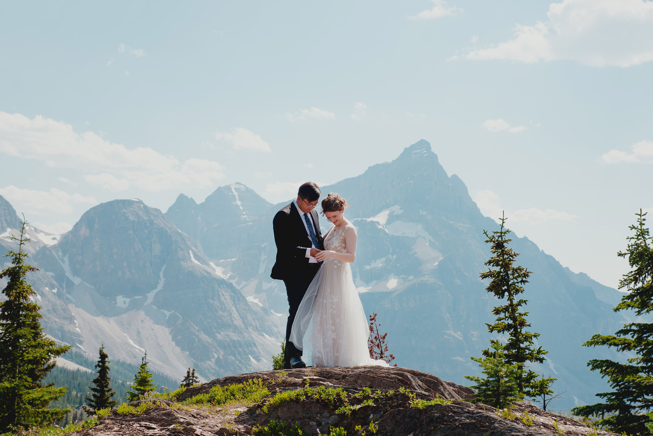 We began our wedding adventure by flying into Marvel Pass where we spent an hour enjoying the solitude and breath-taking scenery. Marvel Pass is situated on the southwest border of Banff National Park.